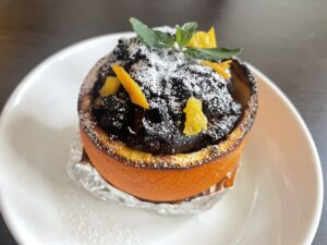 ⑤ブラックペッパーと香草(ミント)をのっけて完成。